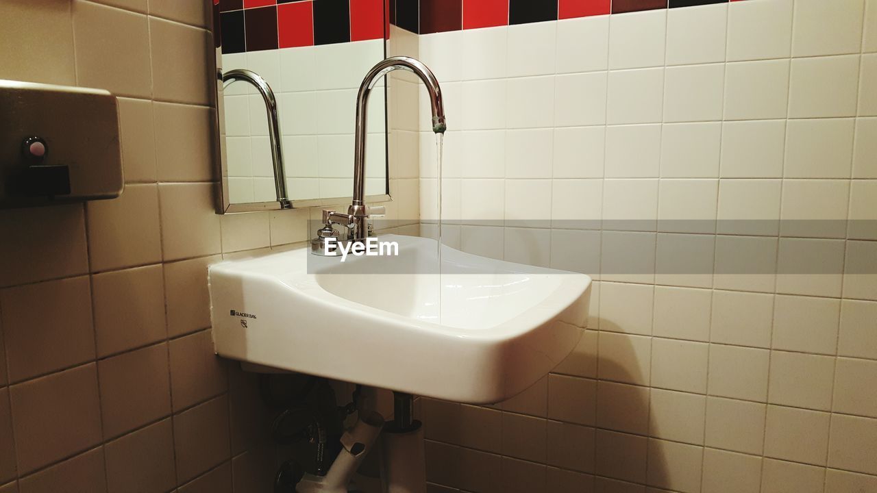 Water Running From Bathroom Sink Faucet Against On Eyeem