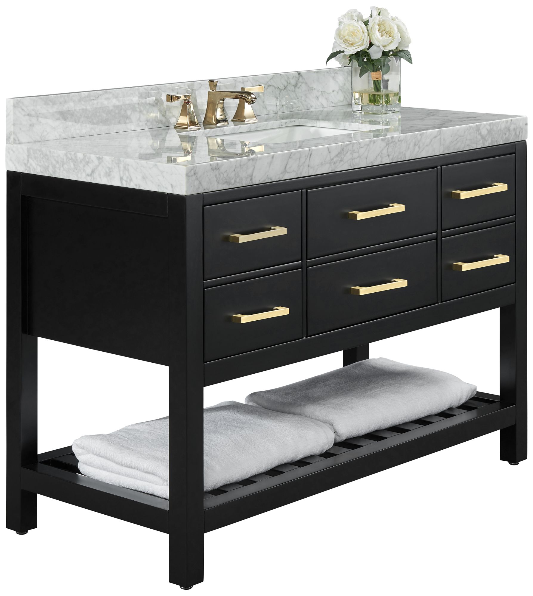 Elizabeth 48 W Onyx Black White Marble Single Sink Vanity 74n24