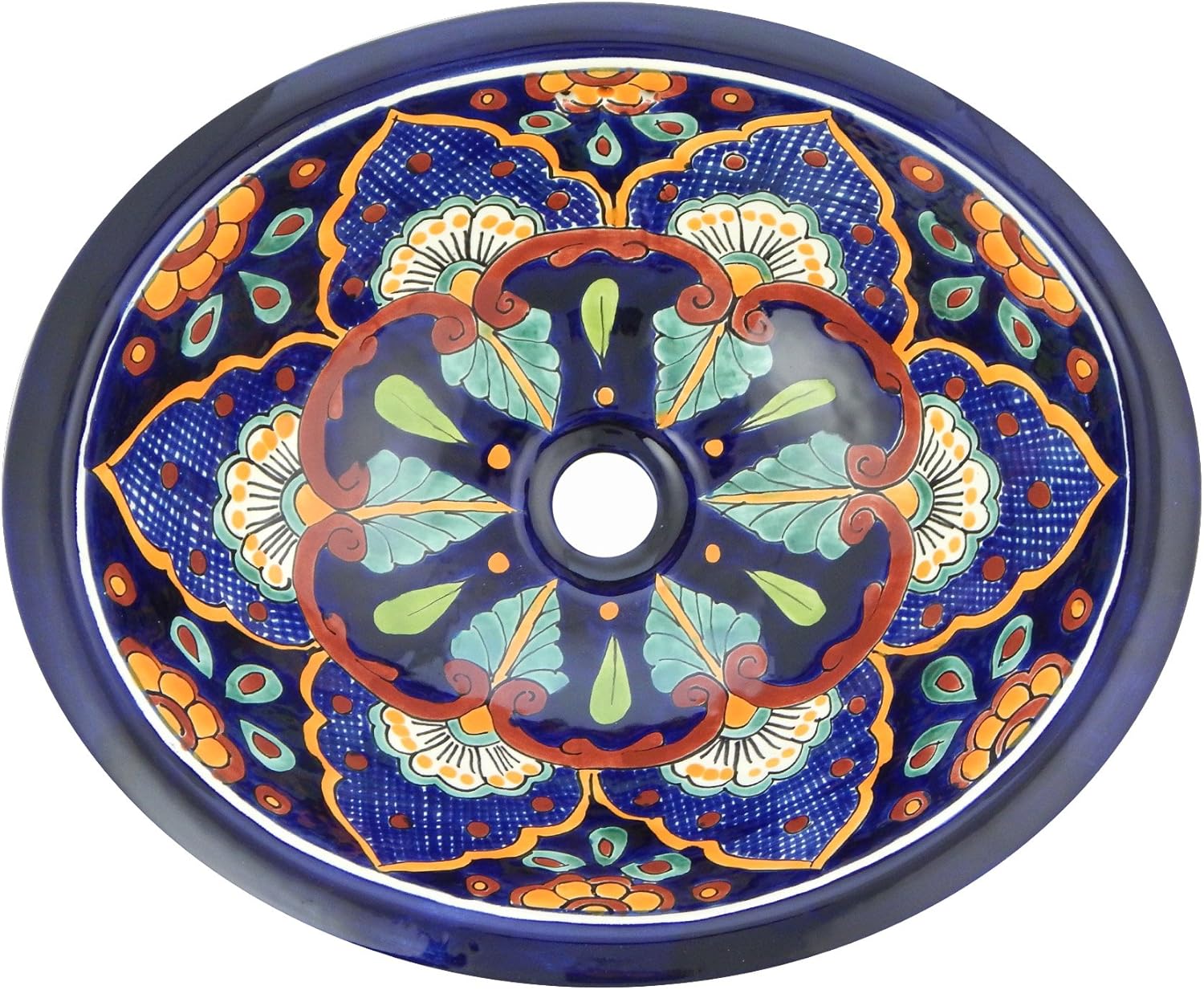 Mexican Talavera Ceramic Hand Painted Bathroom Oval Sink