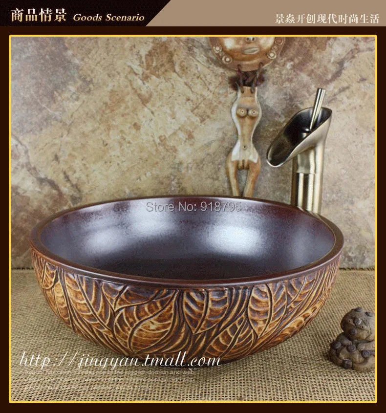 Round Bathroom Ceramic Counter Top Wash Basin Cloakroom Above