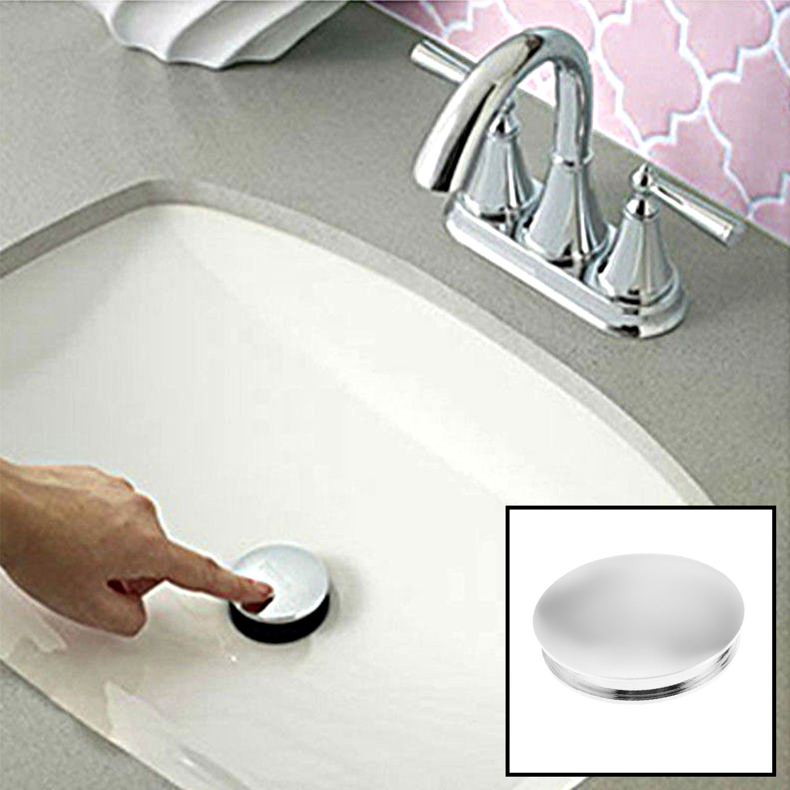 Chrome Bathroom Sink Drain Stopper Waste Pop Up Push Button Click