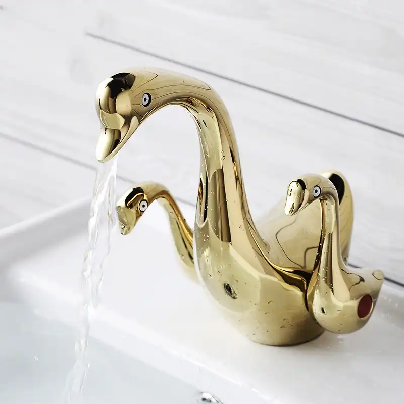 Basin Faucets Gold Swan Design Hot Cold Brass Bathroom Sink