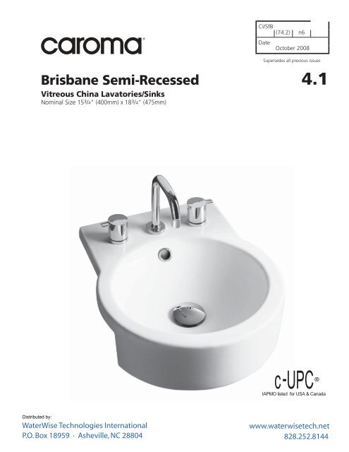 Caroma Brisbane Semi Recessed Sink Specifications Waterwise