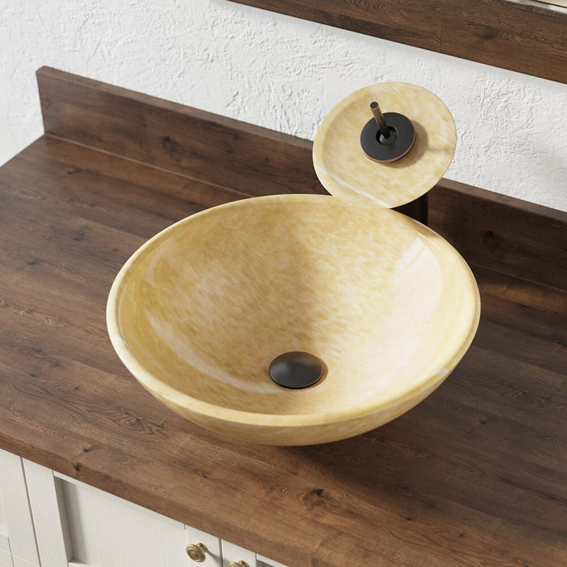 Mrdirect Honey Stone Circular Vessel Bathroom Sink With Faucet