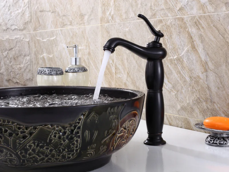 Single Hole Orb Black Color Bathroom Vanity Vessel Sink Faucet Oil