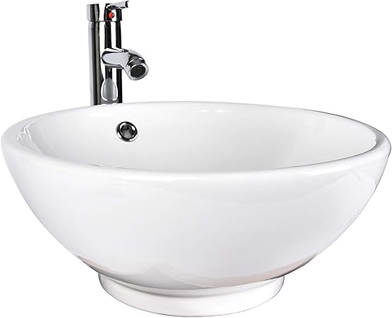 Elecwish Bathroom Vessel Sink Ceramic Round Chrome Brass Faucet