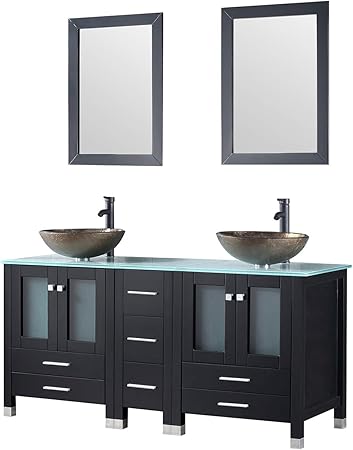 Walcut 60 Inch Black Bathroom Vanity And Sink Combo Double Cabinet