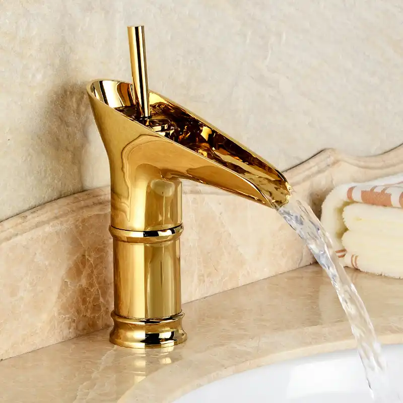 Gold Bathroom Sink Faucets Brushed Antique Brass Gold Waterfall