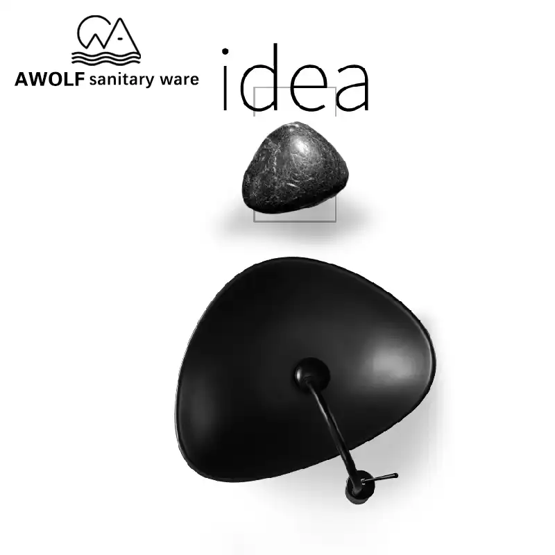 Modern Art Bathroom Sinks Matte Black Ceramic Vessel Triangle