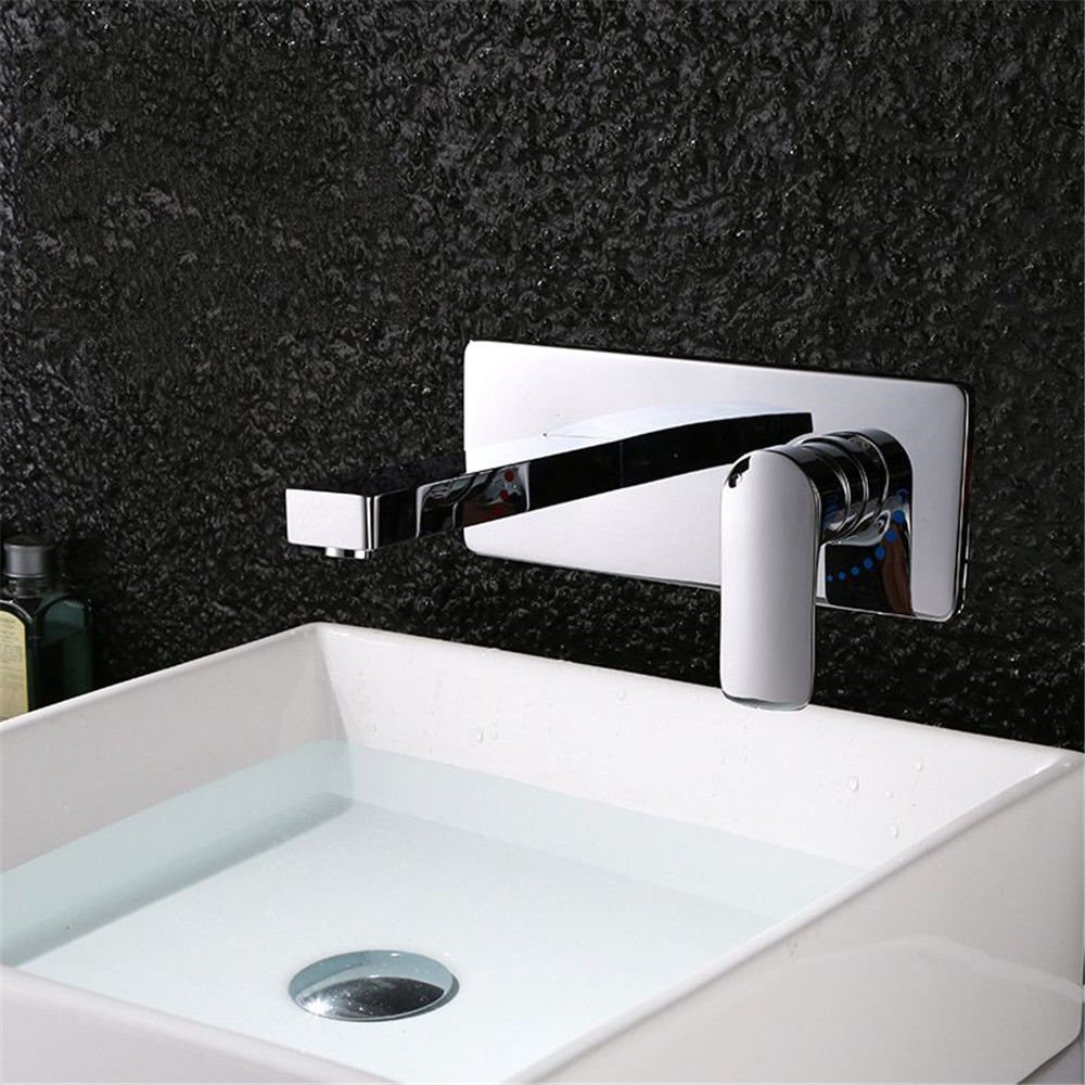 Wall Flush Mounted Faucet Waterfall Chrome Faucet Double Handles