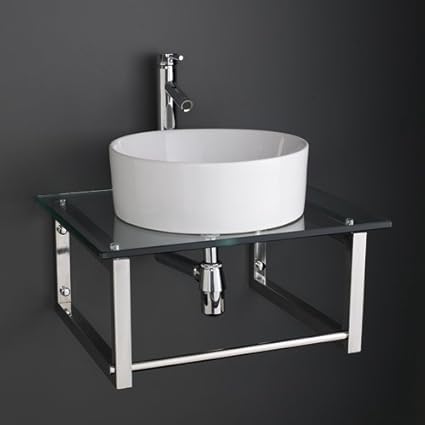 Moda 60cm X 50cm Glass Shelf With Round White Bathroom Basin Sink