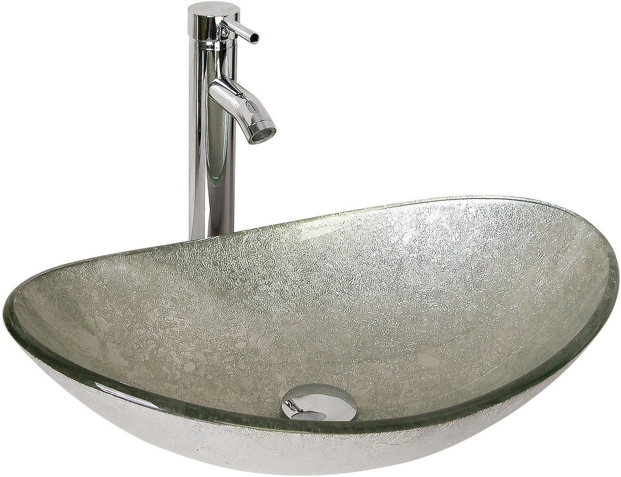 Sliverylake Artistic Boat Oval Sink Bowl Bathroom Glass Vessel