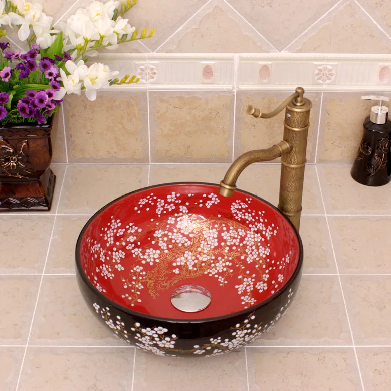 Europe Vintage Style Hand Painting Wash Basin Art Countertop