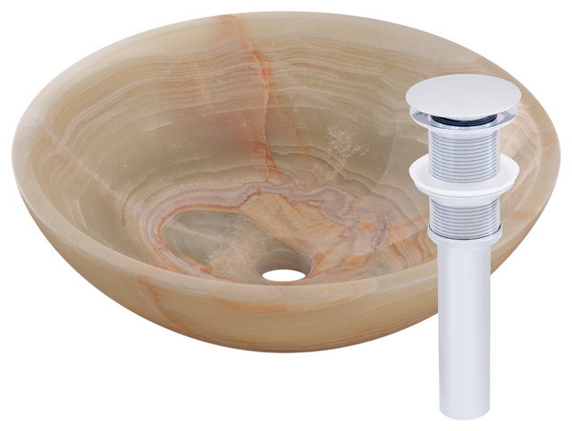 For the modern to the transitional home this onyx stone circular vessel bathroom sink has a way of looking unique in any bathroom. Large natural vessel sink. Bands of white peek through the polished opaque stone sink which comes in an oval shape with indented ends.