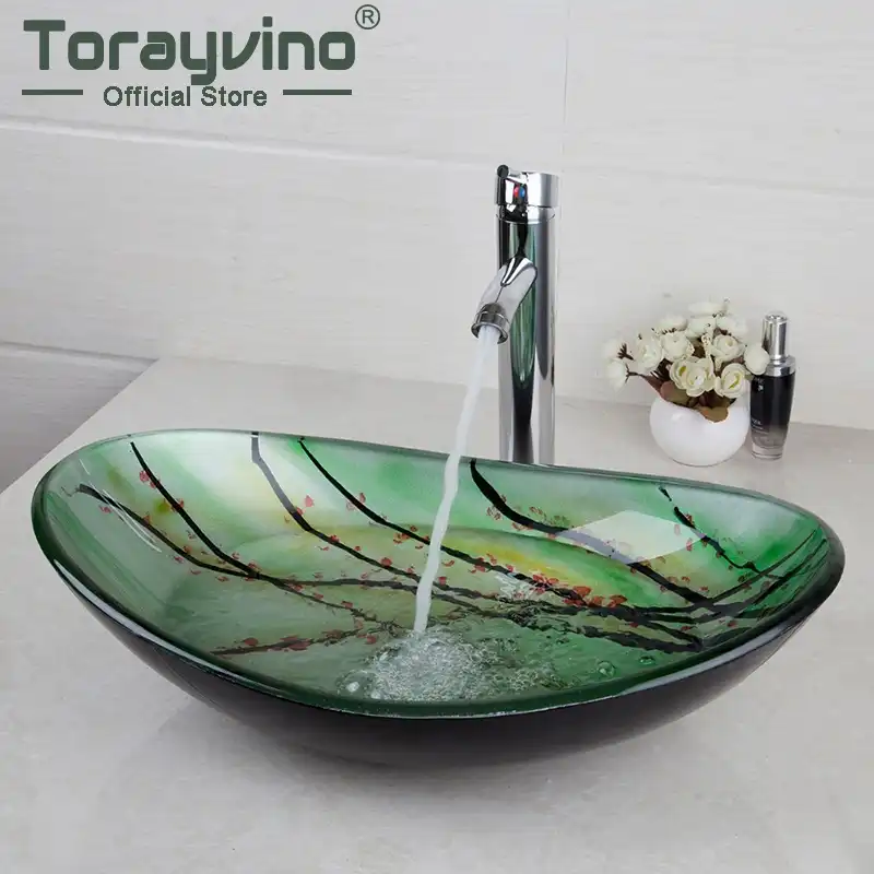 Buy Wash Basin Sink Tap Bathroom Sink Glass Hand Paint Lavatory