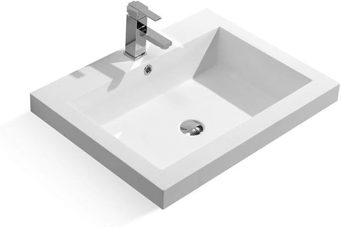 Dax Solid Surface Rectangle Single Bowl Top Mount Bathroom Sink White