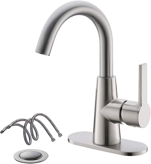 Single Handle High Arc Stainless Steel Bathroom Sink Faucet Bar