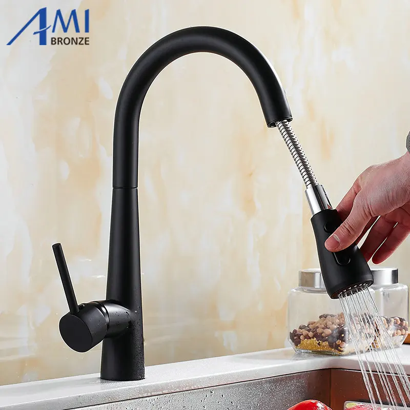 Black Paint Pull Out Faucets Kitchen Faucet Bathroom Basin Hot