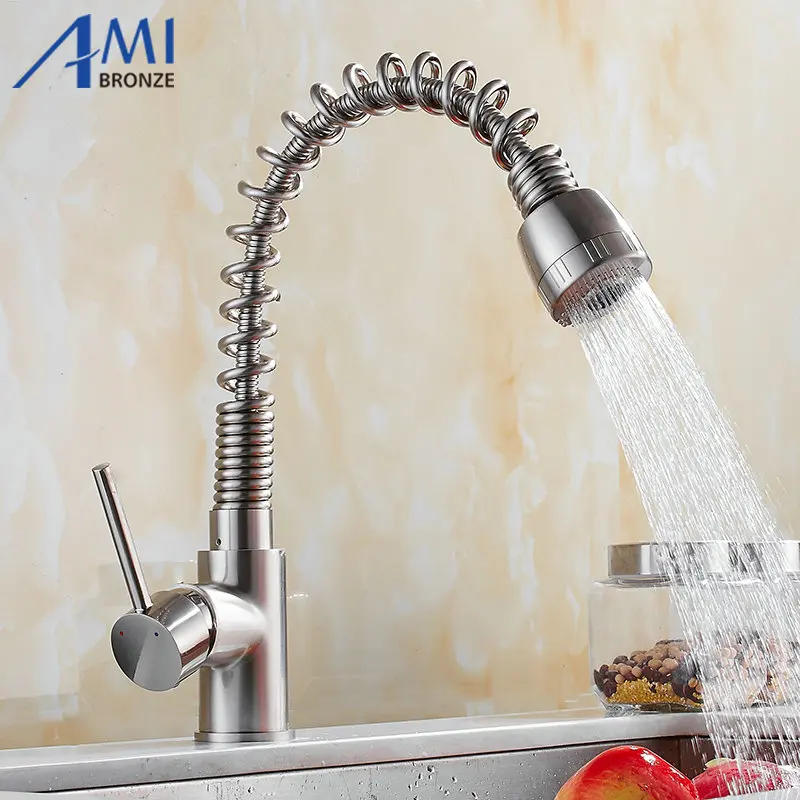 Nickel Brushed Pull Out Faucets Kitchen Sink Faucet Bathroom Basin