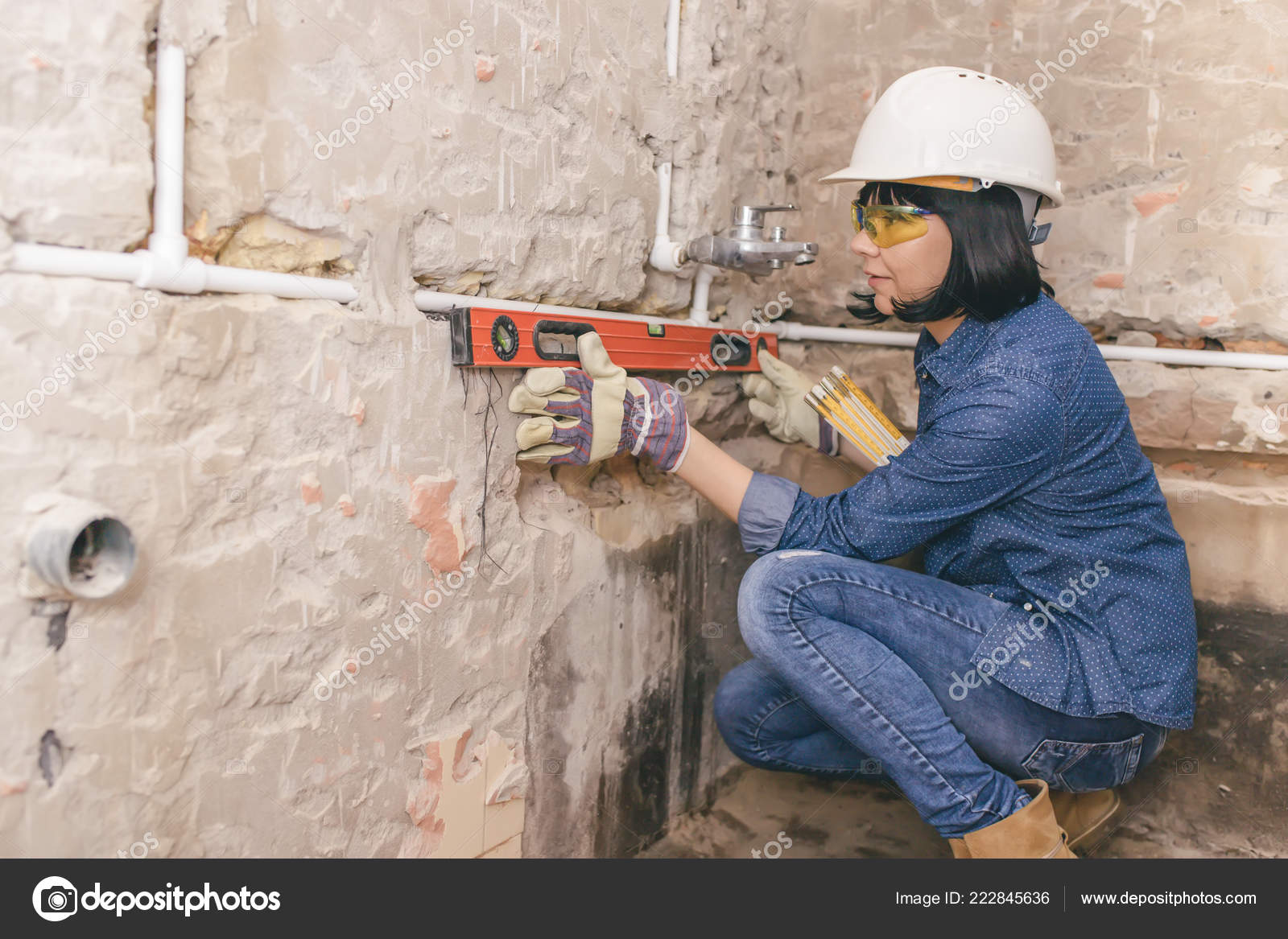 Clever Woman Repairing Her Bathroom Sink Stock Photo Edit Now