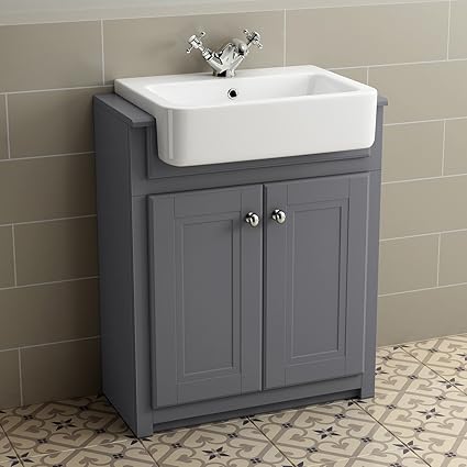 The Bath Co Camberley Satin Grey Floorstanding Vanity Unit And