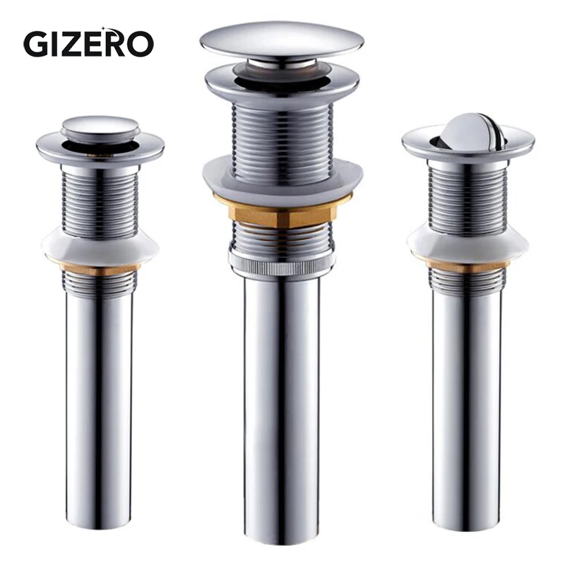 2pcs Chrome Basin Waste Pop Up Bathroom Sink Push Button Click