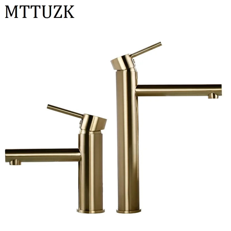 Mttuzk Solid Brass Brushed Gold Bathroom Basin Faucet Cold Hot