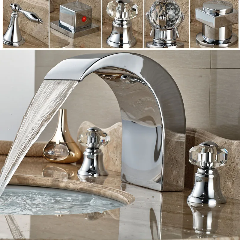 Luxury Big Waterfall Spout Bathroom Basin Mixers Deck Mount Two