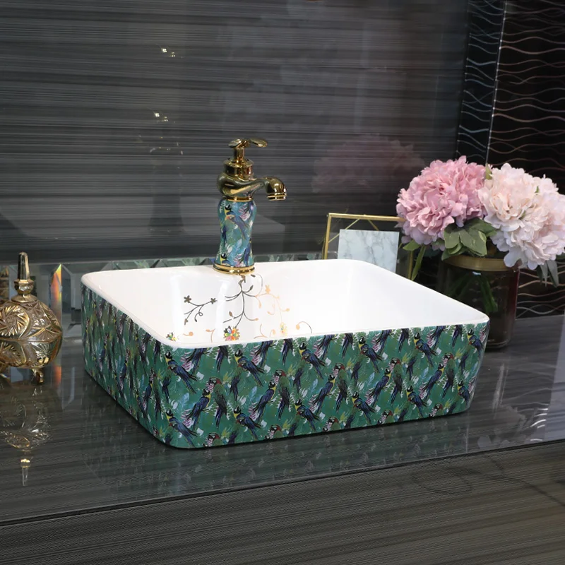 Modern Basin Sink Bowl Rectangular Ceramic Art Wash Basin Small