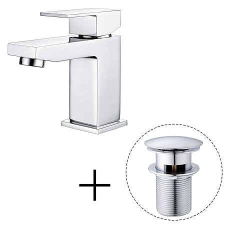 Hapilife Basin Taps Square Bathroom Sink Mixer Taps With Pop Up