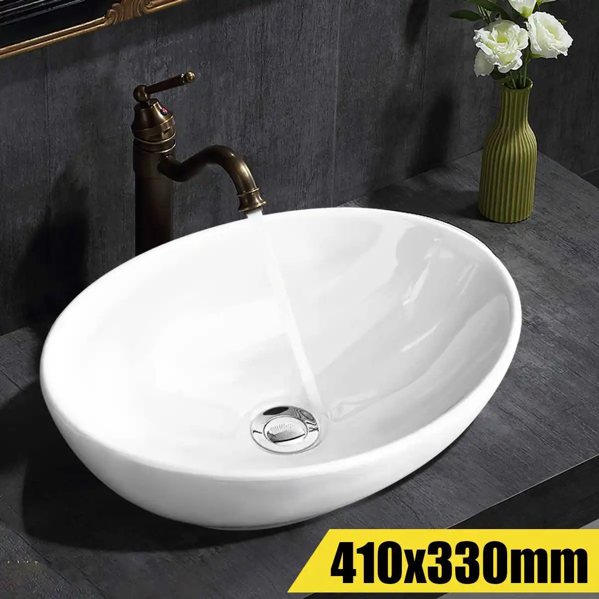 Xueqin 16 Inch Oval Bowl Ceramic Bathroom Vessel Vanity Sink White