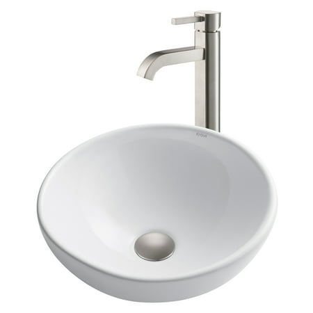 Kraus 16 Inch Round White Porcelain Ceramic Bathroom Vessel Sink
