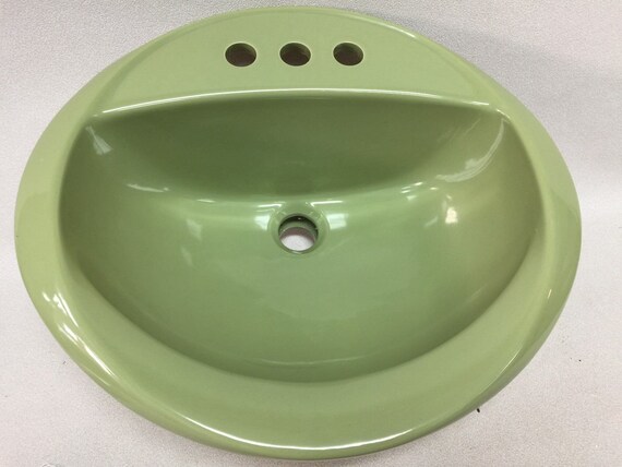 Bs 526 Nos Vintage Crane Avocado Green Ceramic Bathroom Sink Etsy