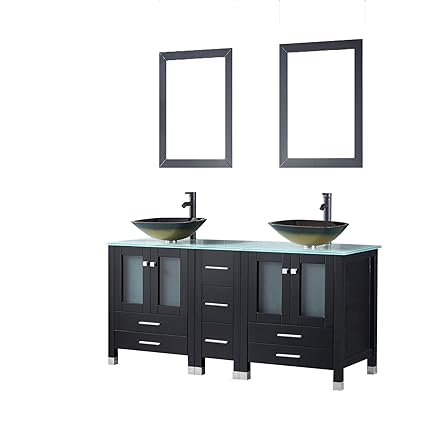 Amazon Com 48 Bathroom Vanity Cabinet Black Granite Top Ceramic
