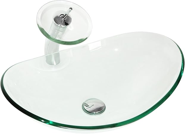 Sliverylake Modern Oval Bathroom Clear Glass Vessel Sink With