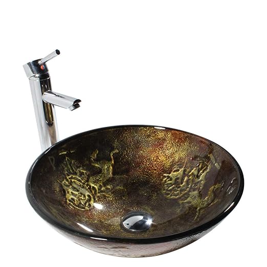 Bathroom Sink Set Hand Painting Tempered Glass Basin Bowl Sinks