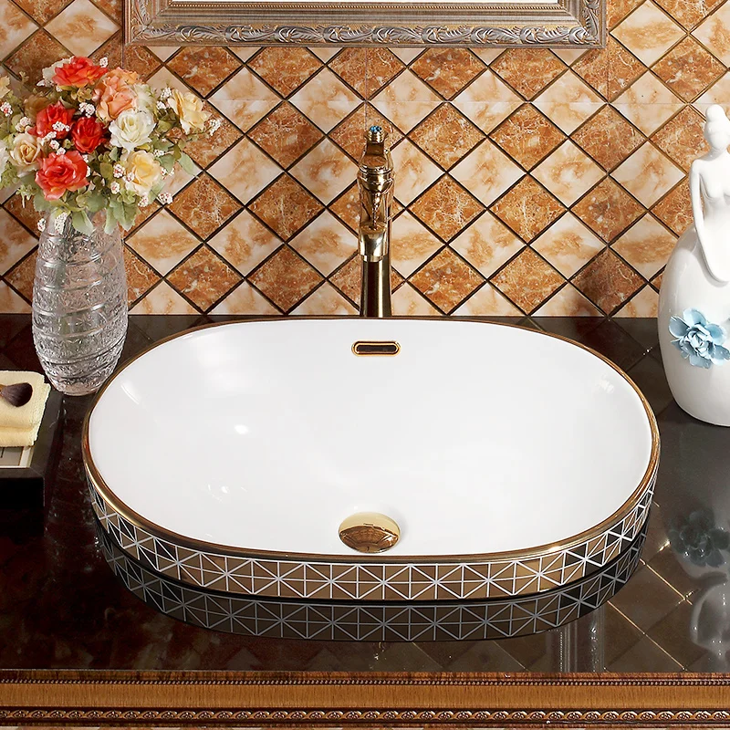 Oval Overflow Mosaic Gold Europe Vintage Style Art Wash Basin