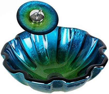 Jin Art Blues Shell Tempered Glass Sink And Waterfall Faucet 420