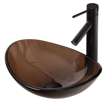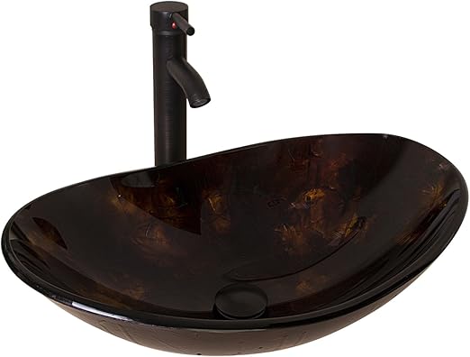 Elite Unique Oval Clear Brown Bathroom Glass Vessel Sink Oil