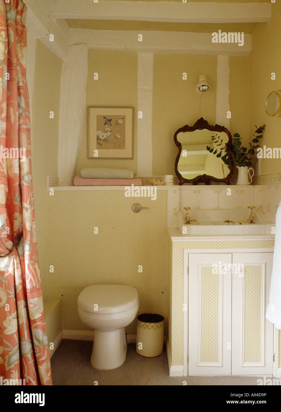 Basin In Vanity Unit Beside Toilet In Cream Cottage Bathroom With