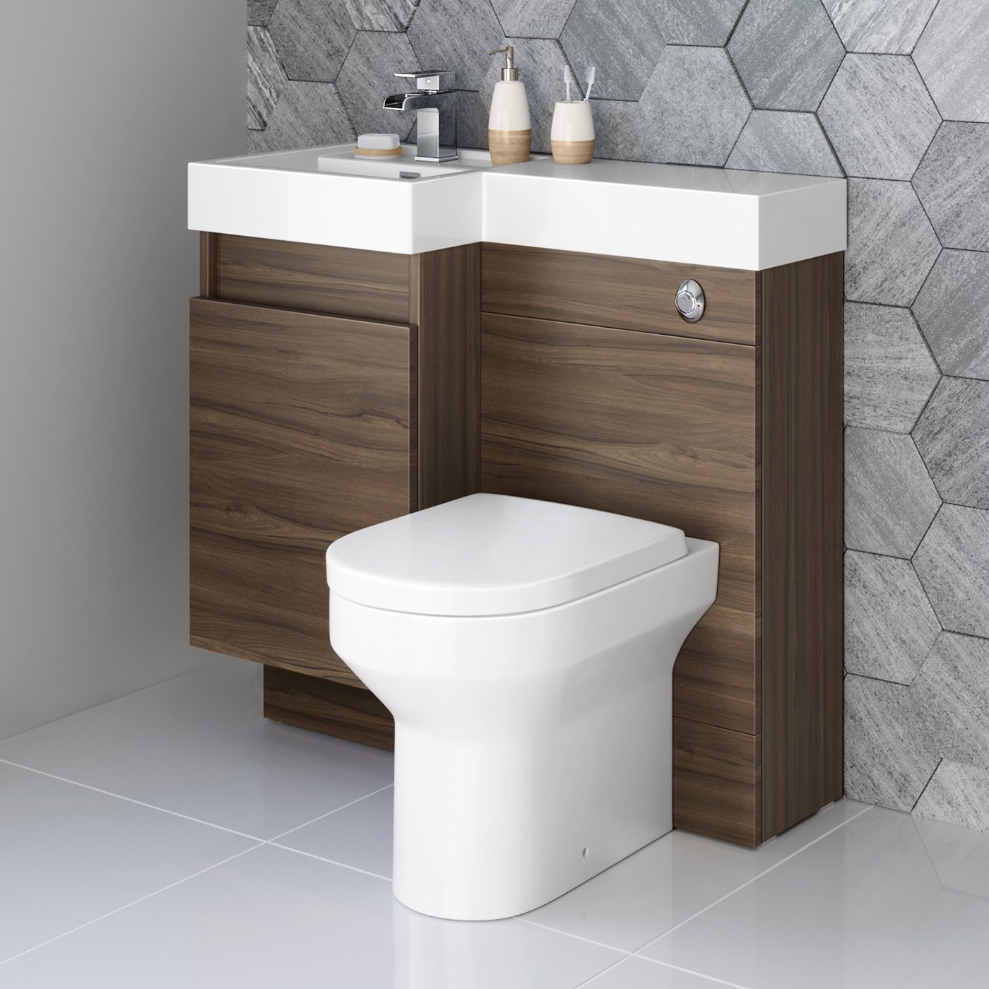 Pemberton L Shape 2 Drawer Basin And Toilet Combination Vanity