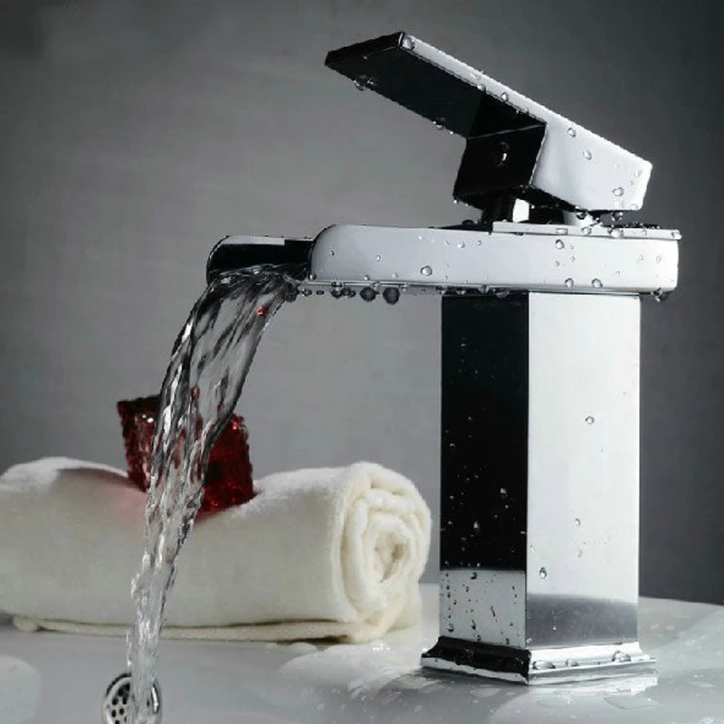 Cool Square Shaped Long Waterfall Spout Bathroom Sink Faucet