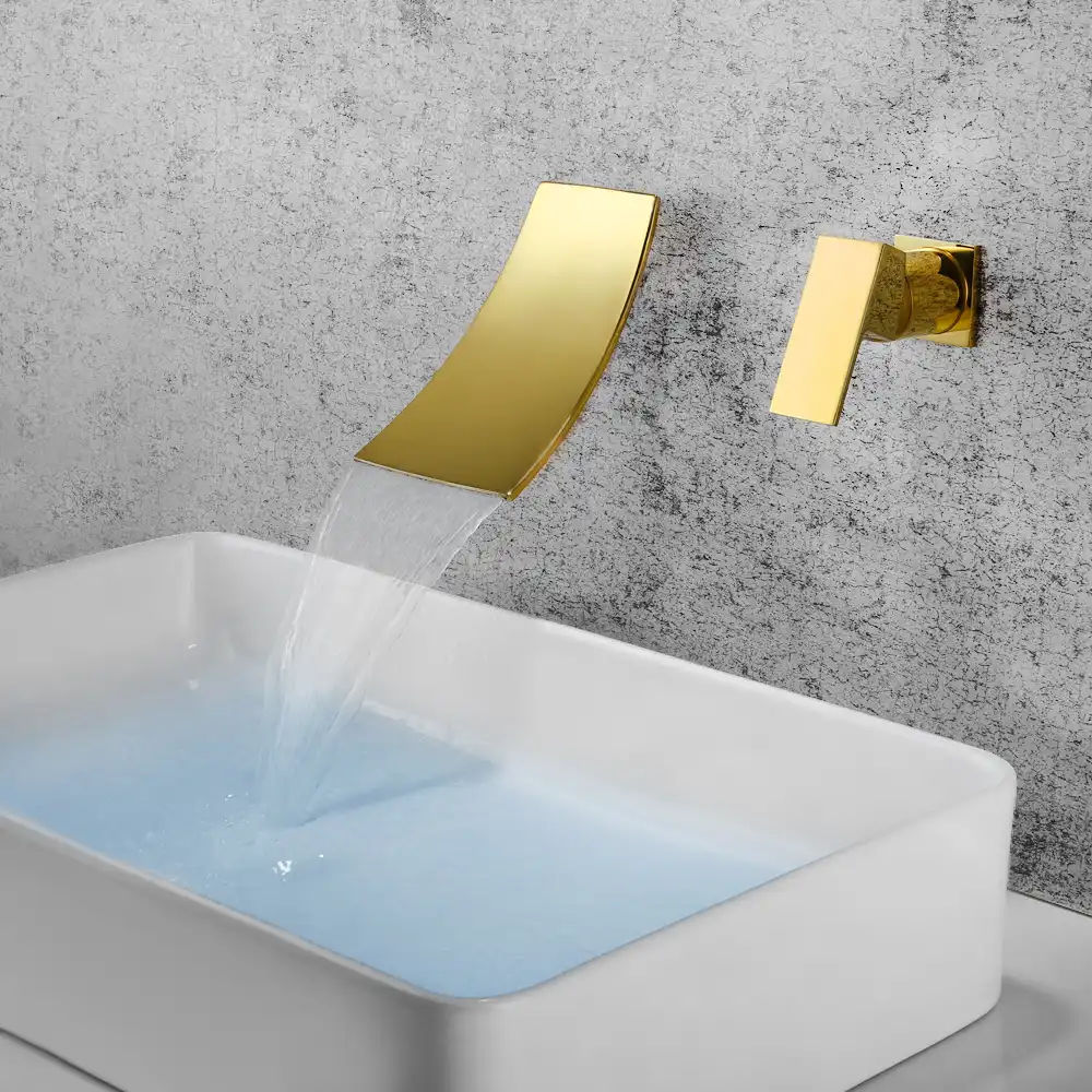 Skowll Wall Mounted Waterfall Faucet Gold Mixer Tap Bathroom