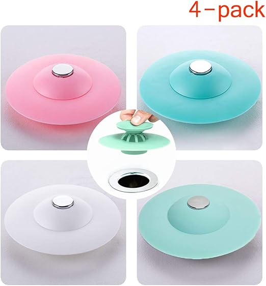 Set Of 4 Drain Stoppers 2in1 Silicone Water Universal Drain