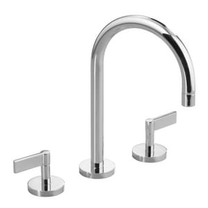 Kallista widespread bathroom faucet with low spout and metal lever handles from the one collection.