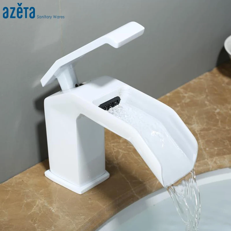 Azeta Modern Bathroom Basin Faucet Waterfall Sink Tap Mixer White