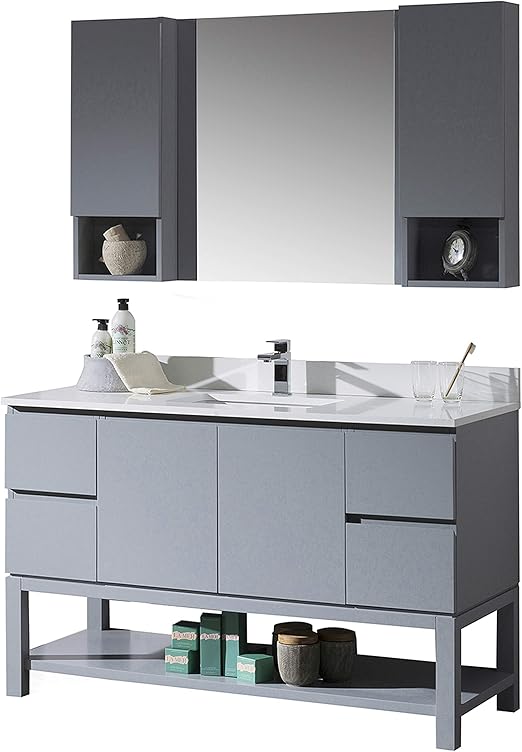 54 Inch Single Sink Bathroom Vanity Set Grey Finish With White