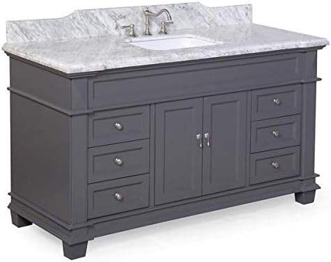 Elizabeth 60 Inch Single Bathroom Vanity Carrara Charcoal Gray