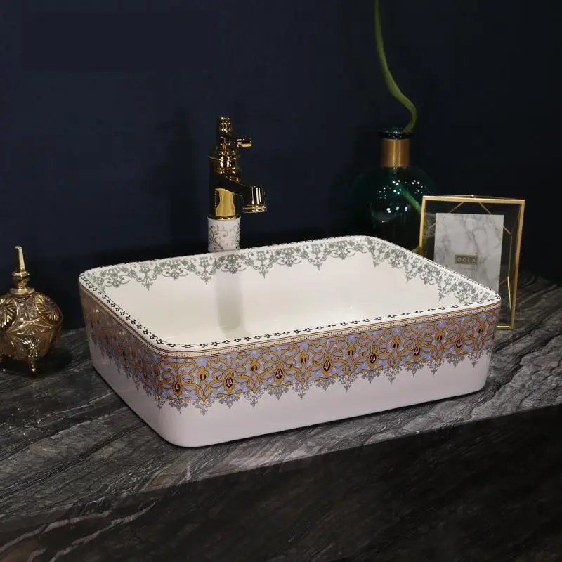 Rectangular Europe Vintage Style Ceramic Sinks Counter Top Wash
