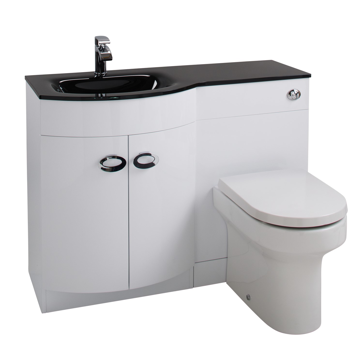 White Left Hand Vanity Unit Black Glass Basin Without Toilet